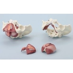 Anatomical Model- Female Pelvis and Pelvic Floor, 5 part is a complete life-size female pelvis model of synthetic bone-like material with a highly detailed pelvic floor made of flexible plastic.