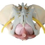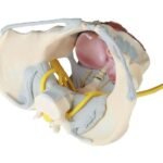 The model is life-size. Female pelvis like 4070, but showing ligaments, nerves and removable 2-part pelvic floor muscles.
