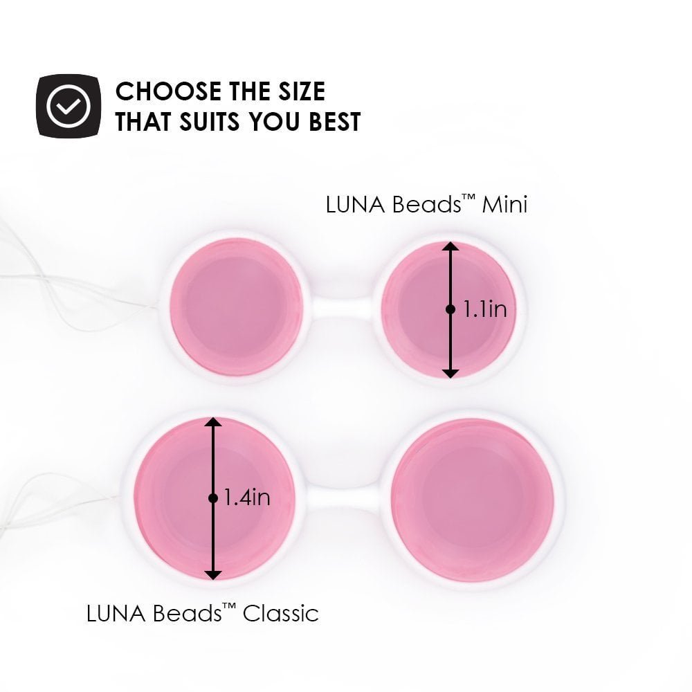 Luna Beads™ Mini are a smaller version of Luna Beads™ and better suit women who have not given birth or who have a smaller hiatus ( the gap between the two sides of the deeper vaginal muscles, levator ani, which surround and support the vagina)