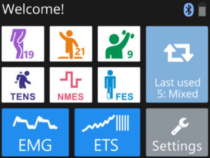 • New and Improved touch-screen with full colour display. The new user friendly interface makes it a self-explanatory unit with the interactive learning on the go, including electrode placement, running EMG graph , EMG biofeedback Games and Templates as well as many other helpful tools.