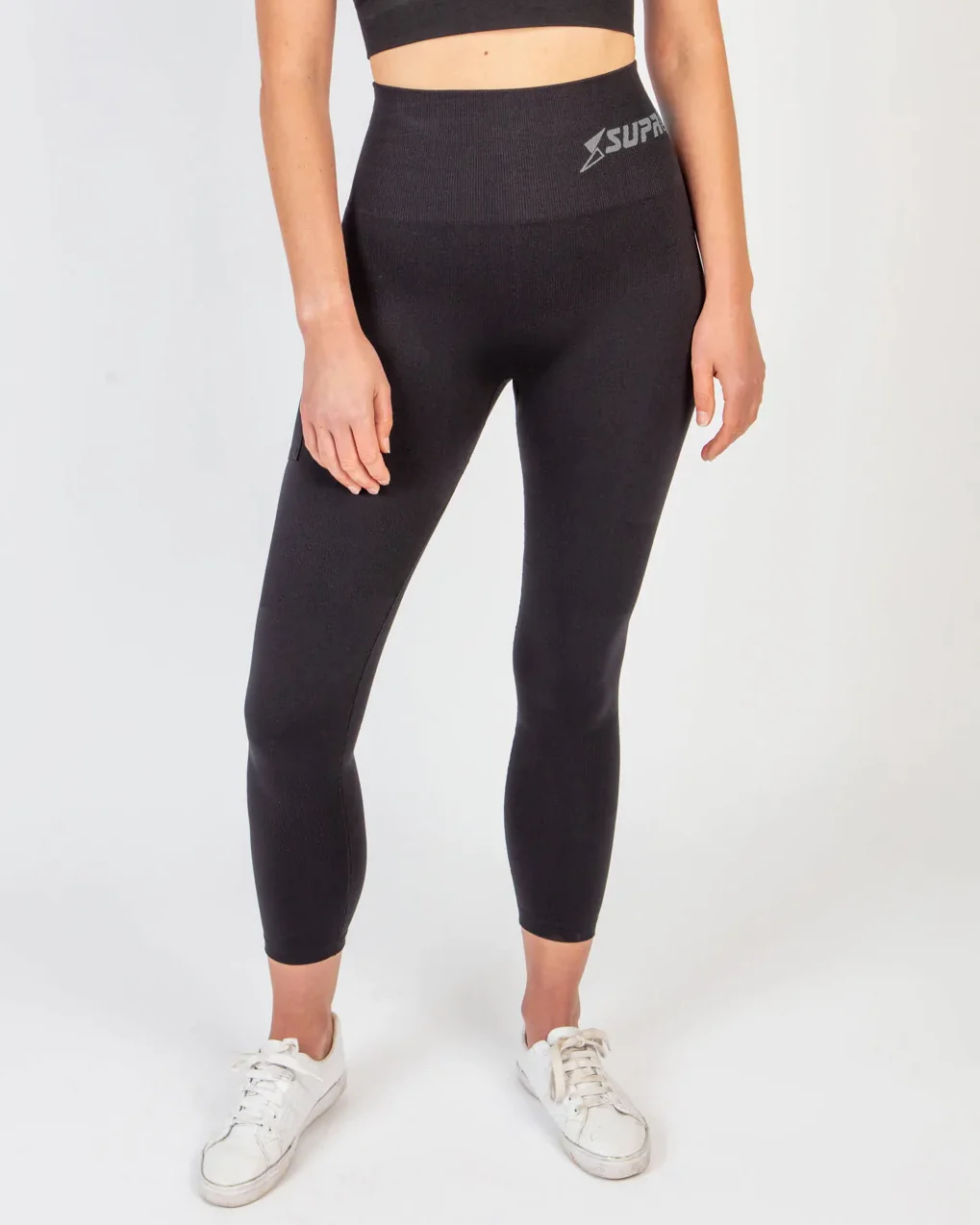 These are the only seamless patented medical-grade leggings that can assist with recovery from abdominal separation, hip and groin and related injuries. Our Patented Coretech® waistband technology has a built-in sacroiliac belt/back brace to stabilize the pelvis and activate the core. These leggings also feature Ribtech® which is our body-mapped ribbing technology that provides micro-massaging ( kinesiology) to the muscles whilst you are in motion.